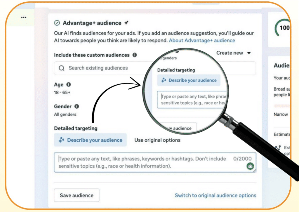 This update is part of the broader Advantage+ suite and signals a clear shift toward prompt-based targeting. Rather than relying on predefined categories, Meta’s system interprets your description using behavioural and intent-based signals to identify the right audience.